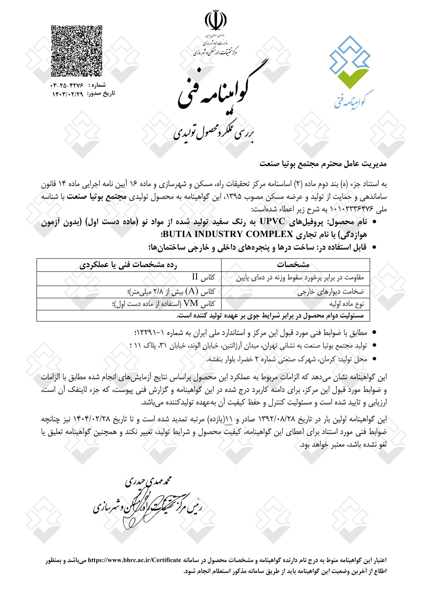 مجتمع بوتیا صنعت به عنوان اولین تولید کننده پروفیل در و پنجره دوجداره uPVC در ایران، در جهت ارتقاء کیفیت صنعت ساختمان، تحقق سیاستهای بهینه سازی مصرف سوخت کشور، جلوگیری از اتلاف سرمایه های ملی و کاهش هزینه خانوار در شهریور ماه 1381 تأسیس شد. کارخانجات این مجتمع در زمینی به مساحت 11 هکتار و زیربنایی در حدود 25،000 مترمربع در شهرک صنعتی شماره 2 کرمان احداث گردید و درخرداد ماه 1384 به بهره برداری آزمایشی رسید ….