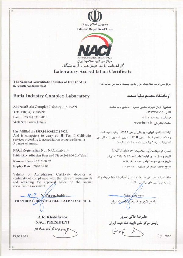 گواهینامه تایید صلاحیت آزمایشگاه 17025