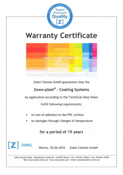 ضمانت نامه رنگ 15 ساله شرکت ZOBEL آلمان