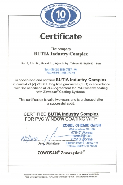 تاییدیه کارگاه رنگ بوتیا توسط شرکت ZOBEL آلمان