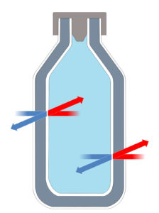 When cold liquid is poured into a thermos flask, the silver lining stabilizes liquid temperature by reflecting the heat coming from outside.